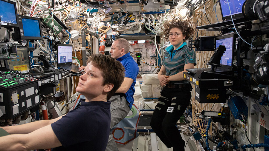 Koch then joined fellow astronauts Anne McClain and David Saint-Jacques in the afternoon exploring how the immune system responds during a long-term space mission. The crew is observing dozens of mice on the orbital lab to characterize the response changes since the mouse immune system closely parallels that of humans.