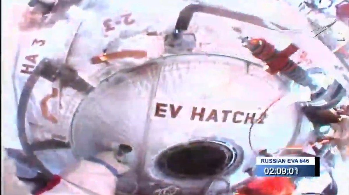 The two cosmonauts opened the hatch to the Pirs docking compartment to begin the spacewalk at 11:42 a.m. EDT. They re-entered the airlock and closed the hatch at 5:43 p.m.