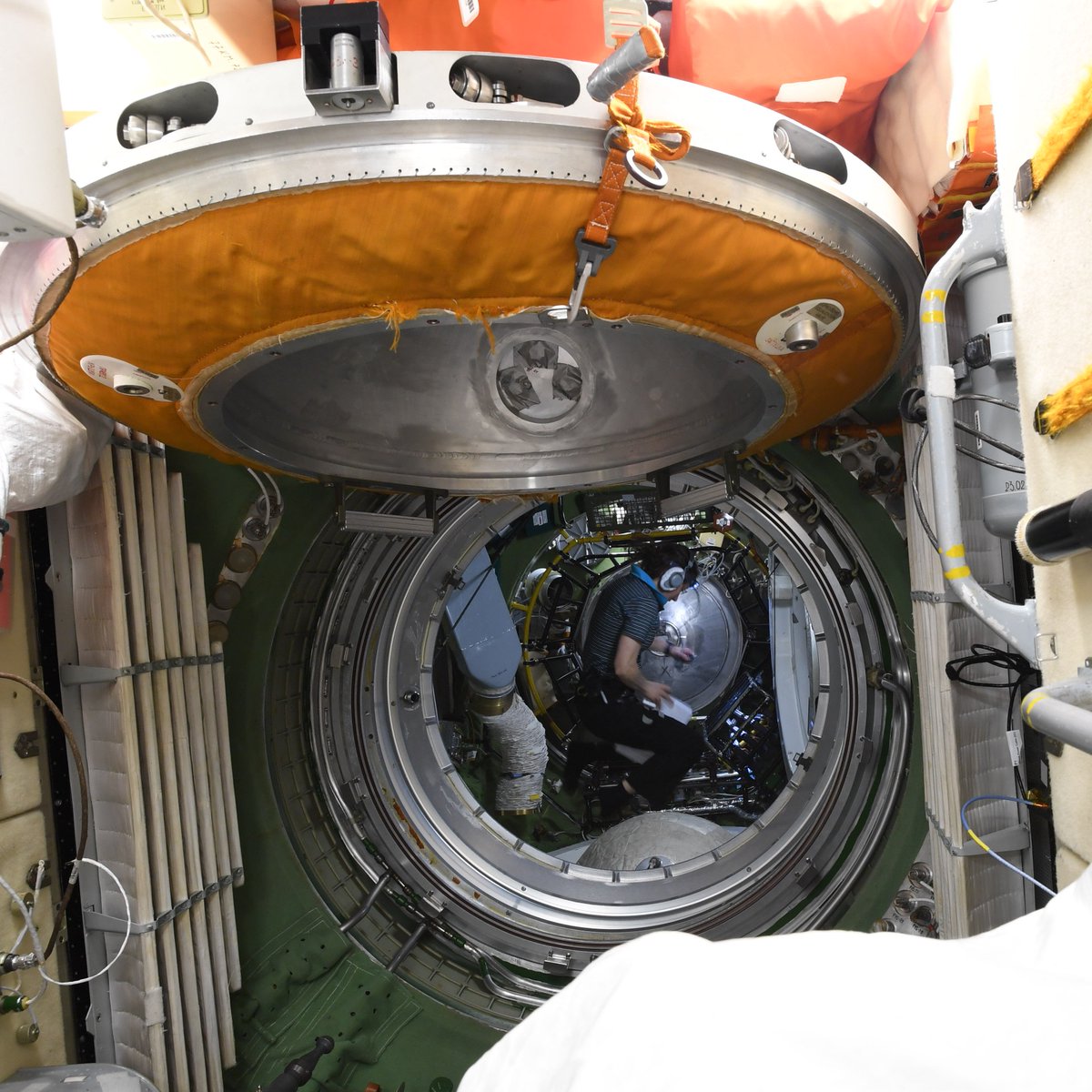 The crew installed a software update to the Photobioreactor hardware. Today the life support systems that sustain astronauts in space are based on physicochemical processes. The Photobioreactor investigation aims at demonstrating that microalgae (i.e. biological processes) can be used together with existing systems to improve recycling of resources, creating a hybrid life support system. This hybrid approach could be helpful in future long-duration exploration missions, as it could reduce the amount of consumables required from Earth, and will first be tested in space on the ISS.
