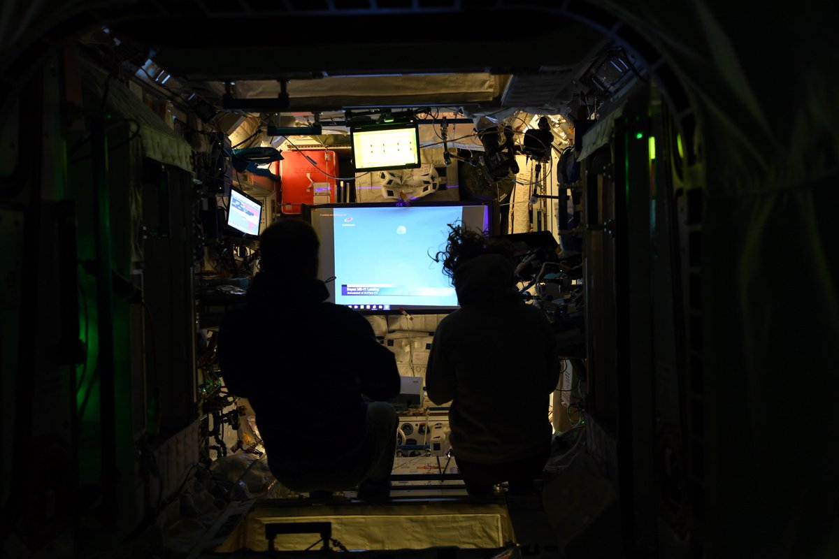 Under parachute! Glued on the video of our crewmates as they returned safely to the planet.
