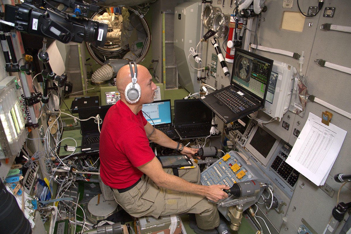 'Attached to the roof' of Columbus, while working on FSL, the lab for fluid physics experiments. @ISS_Research #MissionBeyond