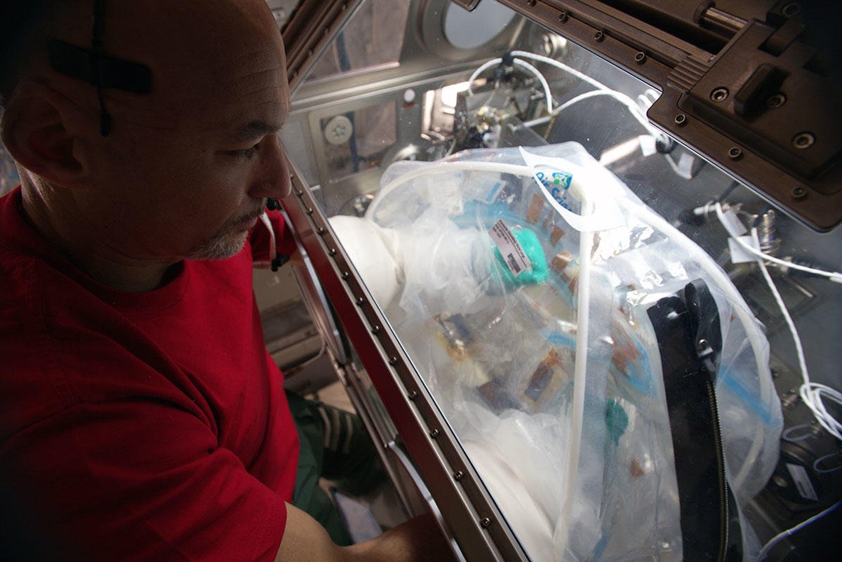 The crew installed twelve Everroad Modules into the Multi-use Variable-g Platform which initiated MVP-Cell-02 experiment. The investigation seeks to understand how organisms adapt to the space environment, an important component of future space exploration. Microbes may play fundamental roles in the development of biologically-based closed-loop regenerative life support, in-situ resource utilization, and will have extensive interactions with human and plant hosts. Further, microbes may pose challenges through virulence and contamination, and as nuisance factors such as biofilms in water supply and ventilation systems.