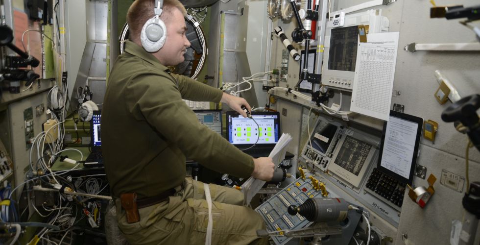 Трансляцию переговоров экипажа МКС с наземными специалистами ведет НАСА.