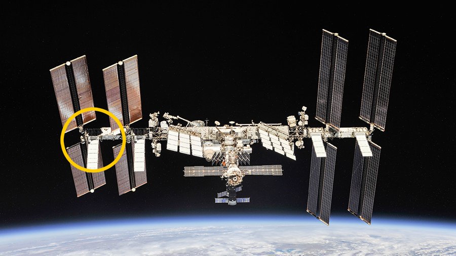 Spacewalkers @Astro_Christina and @AstroDrewMorgan have finished the primary task of installing lithium-ion batteries on the station's Port-6 truss structure (circled below).