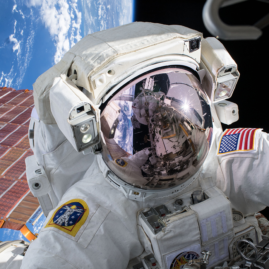 I took this photo of my awesome crewmate, @Astro_Christina, on our spacewalk to replace batteries on the @Space_Station. Stay tuned for several more spacewalks this month!