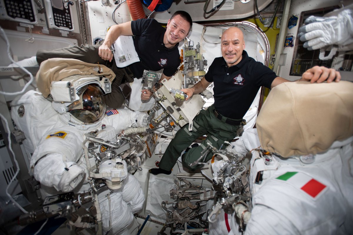 .@astro_luca & I are preparing for a series of 4 spacewalks to repair the Alpha Magnetic Spectrometer, a particle physics experiment searching for antimatter to help us understand the origins of the universe. These will be very complex...it was never intended for repair in space!