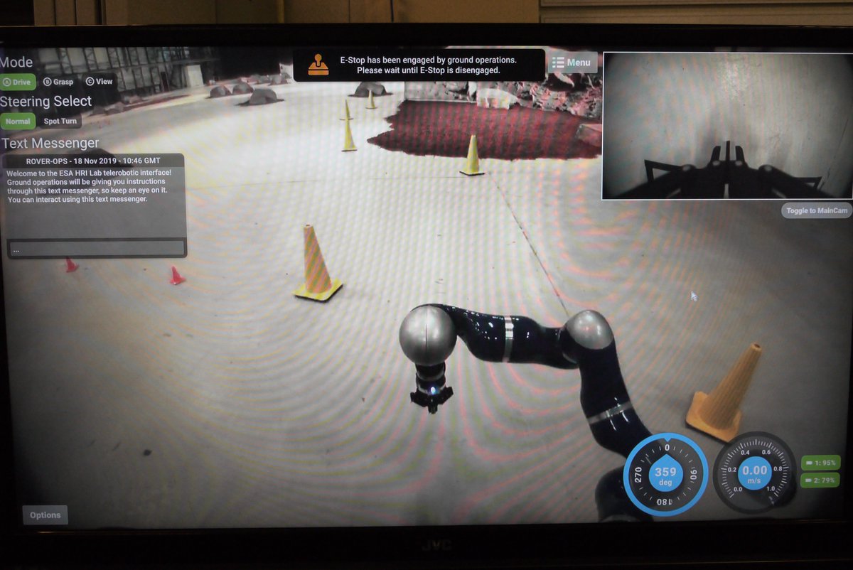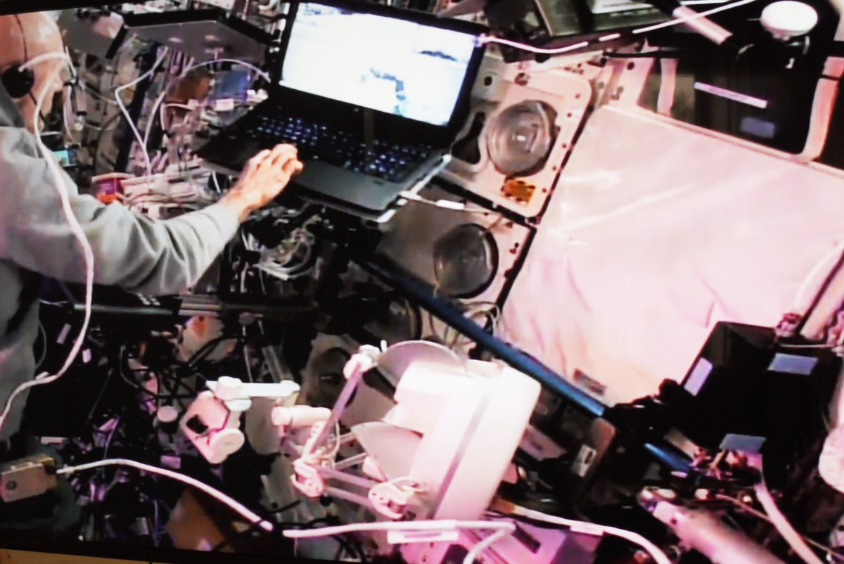 A view from the International @Space_Station with @astro_luca moving the Interact rover on Earth. The white joystick bottom-centre is used to move the sampling arm. #Analog1 https://www.esa.int/Science_Exploration/Human_and_Robotic_Exploration/Driving_test_for_Luca_Parmitano_on_robotic_geology_science ...
