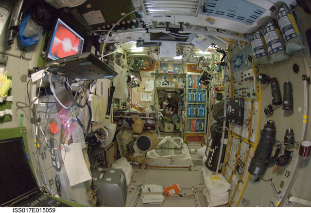 Фотография напомнила разговоры с коллегами из NASA лет 10 назад. Когда они видели, как выглядит интерьер базового блока "Мира", они неодобрительно качали головами и говорили, что в модулях американского сегмента МКС будет не так. А будет там идеальный порядок, никаких свисающих проводов, болтающихся на велкро приборов и т.д. Так вот сейчас вид интерьера модуля Lab ничем особо не отличается от СМ или "Мира" :-) Та же ботва из кабелей, те же болтающиеся на велкро приборы...