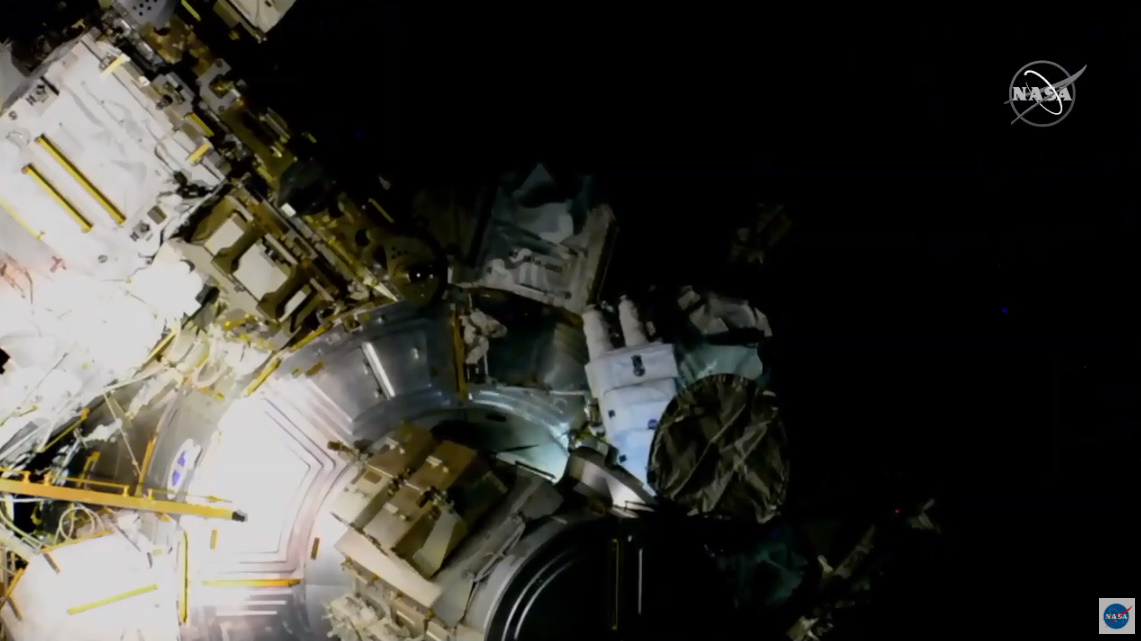 EVA-63: We're seeing EMU boots sticking out of Quest, which means this EVA is coming to a close shortly.