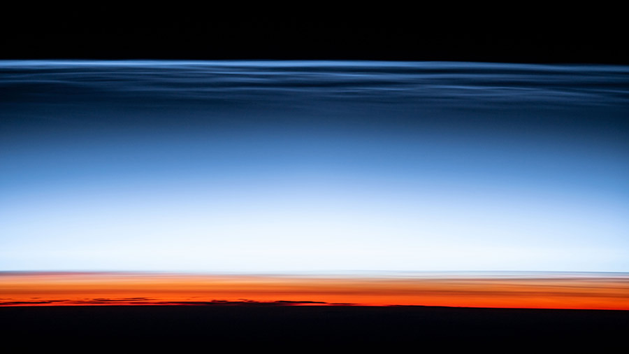 Noctilucent clouds, or night shining clouds, the highest clouds in the Earth's atmosphere, are pictured from the International Space Station orbiting 269 miles above the South Pacific.