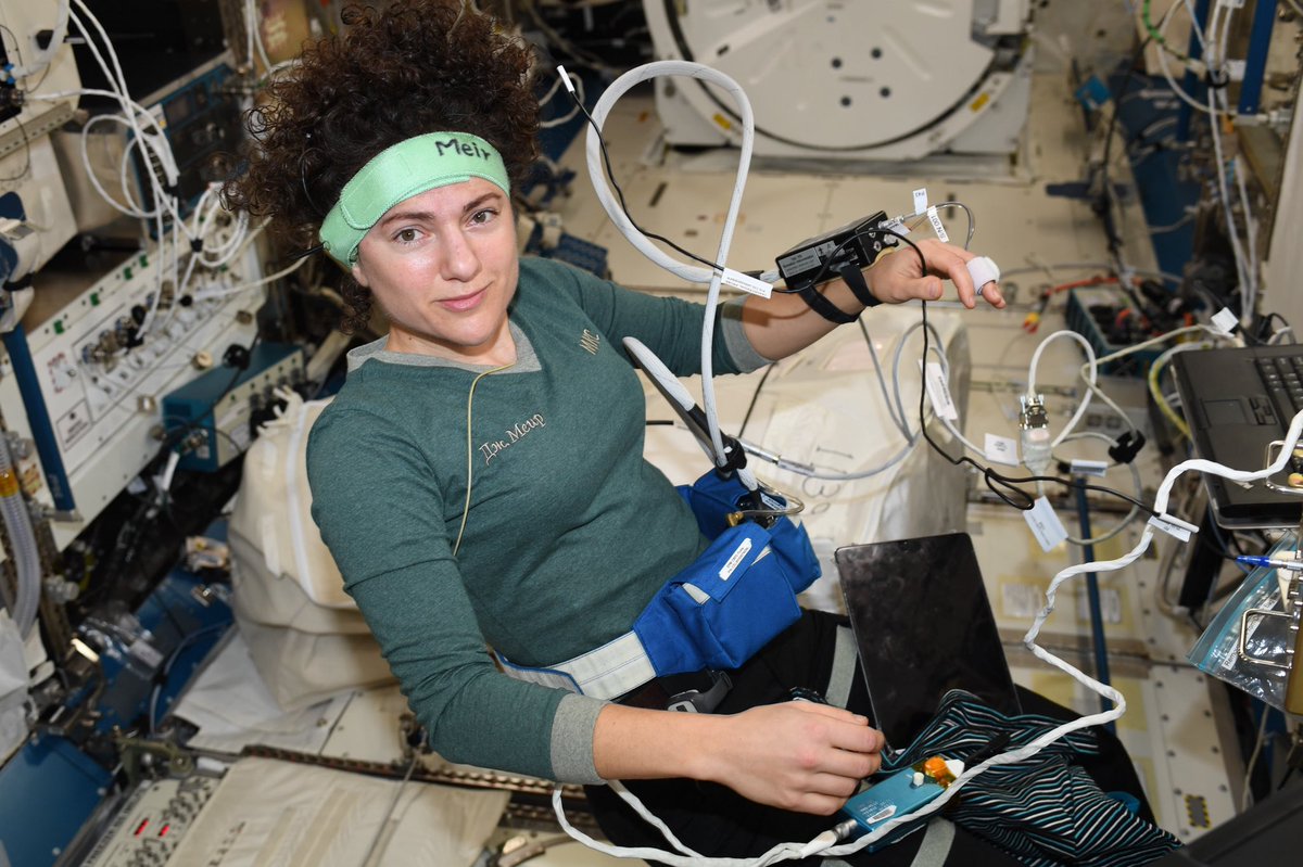 Meir and Morgan also split their on life support maintenance and space plumbing. Meir set up acoustic monitors to measure station sound levels before checking on safety masks and charging spacesuit batteries. Morgan printed out housecleaning to-do lists then worked on the U.S. bathroom, also known as the Waste and Hygiene Compartment.