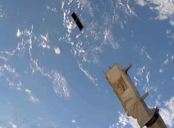 During the crew's lunchtime a series of nine nanosatellites were deployed outside Japan's Kibo laboratory module. They will each study different phenomena such as X-rays from distant pulsars, atmospheric and natural events and the effects of space radiation on hardware.