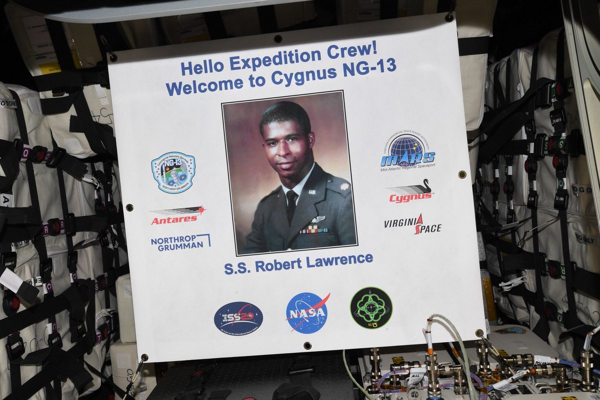 "Congratulations to the entire NASA and Northrop Grumman teams on another successful vehicle capture," Morgan radioed from the space station. "The Cygnus NG-13 vehicle ... is named in honor of U.S. Air Force Maj. Robert H. Lawrence, Jr., and as the first African American to be selected as an astronaut by a national space program, Robert defined possible against the odds when he was selected for the Air Force's Manned Orbiting Laboratory project in 1967."