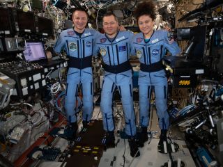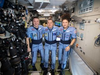 About two hours after docking, hatches between the Soyuz and the station will open, and the six crew members will greet each other.