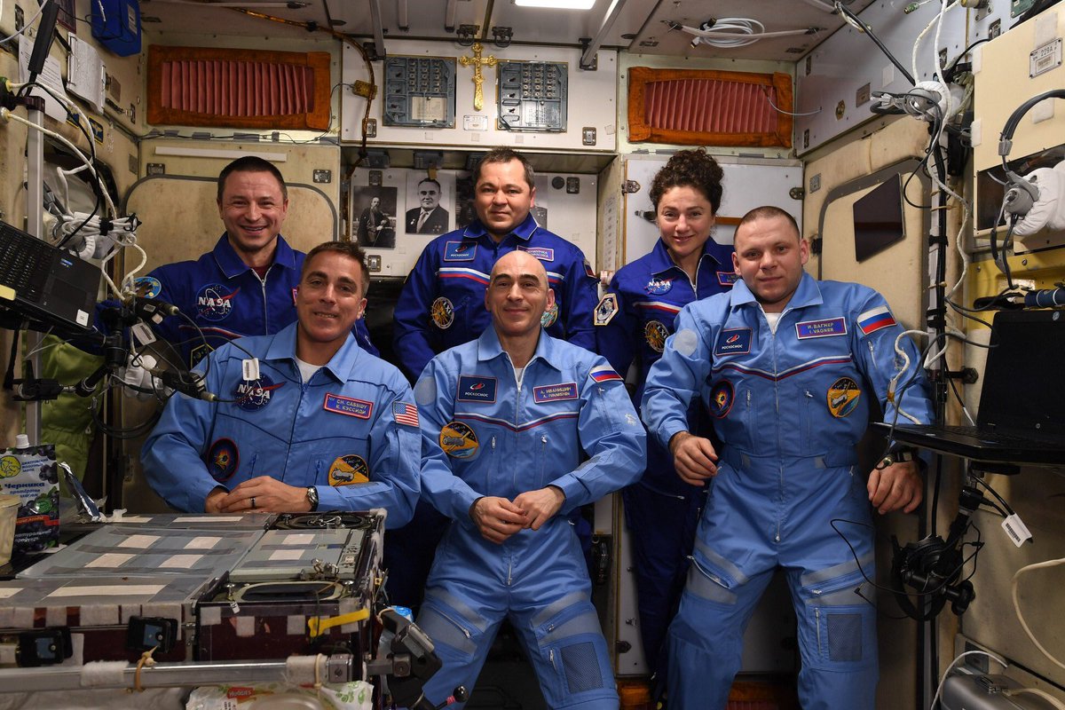 Skripochka, Meir and physician-astronaut Drew Morgan, launched to the station on another Soyuz last July, have had the station to themselves since Feb. 6 when another three-person crew departed. But on Thursday, they were joined by Soyuz MS-16/62S commander Anatoli Ivanishin, Ivan Vagner and NASA astronaut Chris Cassidy, the station's next long-duration crew.