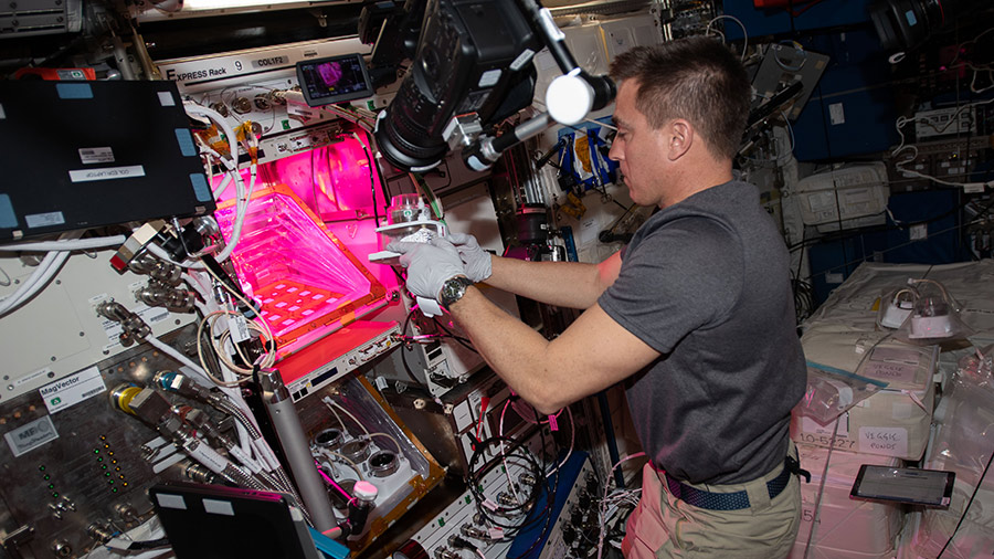 Cassidy, who last served in 2013 as an Expedition 36 flight engineer, also cleaned the Veggie PONDS botany research hardware after growing lettuce and mizuna greens in the Columbus lab module. Next, he swapped batteries in the Astrobee robotic assistant then set up audio software for a hearing assessment.