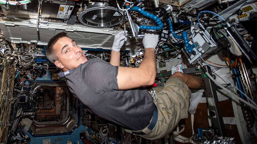 Cassidy also opened up the Combustion Integrated Rack for maintenance replacing components in the research device that enables safe fuel, flame and soot studies in microgravity. Afterward, the three-time station visitor logged his meals for a nutrition study then swapped batteries in an acoustic monitor that measures the sound levels aboard the station.