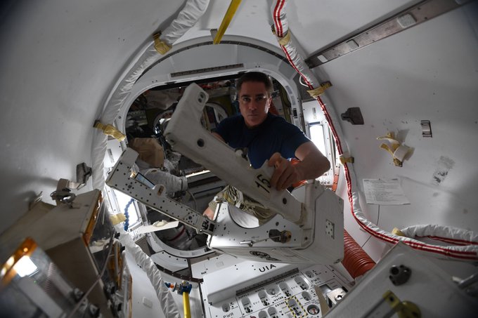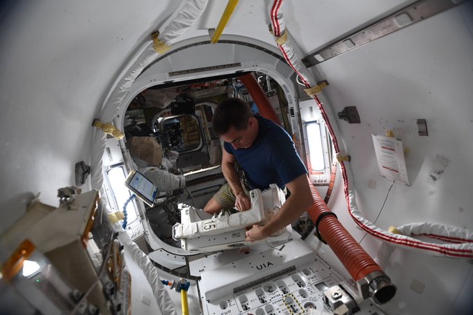 48 hours until @AstroBehnken & I step outside of @Space_Station for a #spacewalk. We're wrapping up final prep which includes "SAFER" – a device with a few minutes worth of compressed gas to help us get back to Station in the unlikely event we become a human untethered satellite.