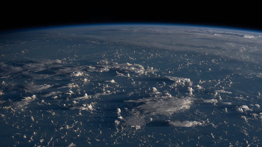 Sunrise casts long shadows from the clouds across the Philippine Sea as the International Space Station orbited about 200 miles east of Taiwan.