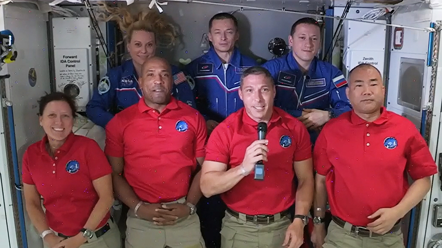 На борту МКС экипаж Crew Dragon встречают астронавт НАСА Кейт Рубинс и двое россиян – Сергей Рыжиков и Сергей Кудь-Сверчков. Прибывшие на орбиту на борту на борту Crew Dragon астронавты НАСА Майкл Хопкинс, Виктор Грловер, Шэннон Уокер, а также японский астронавт Соити Ногути будут оставаться на МКС около полугода.