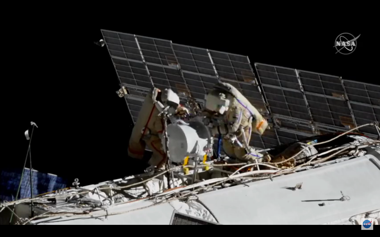 RS/EVA-47: PET 4h:30m; Ryzhikov and Kud-Sverchkov have disconnected the telemetry cable from Pirs and connected it to Poisk, a step toward decommissioning Pirs before detachment next year; the cosmonauts are now going to remove and replace a micrometeoroid "witness plate"