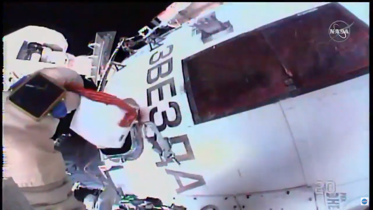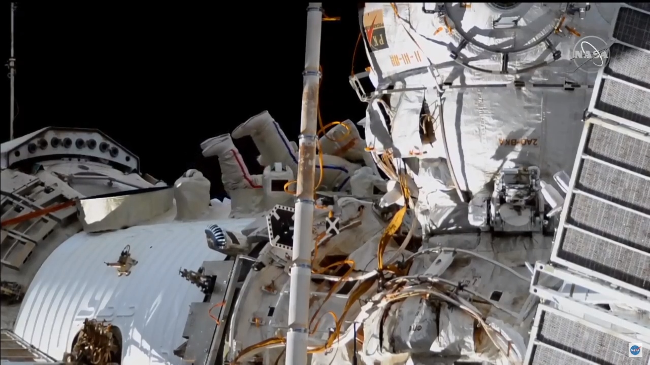 ...but mission control just gave spacewalkers a (previously unplanned?) task of photographing an aggregate compartment area on the Zvezda Service Module, which had a leak (only 5 minutes allocated for that work)!