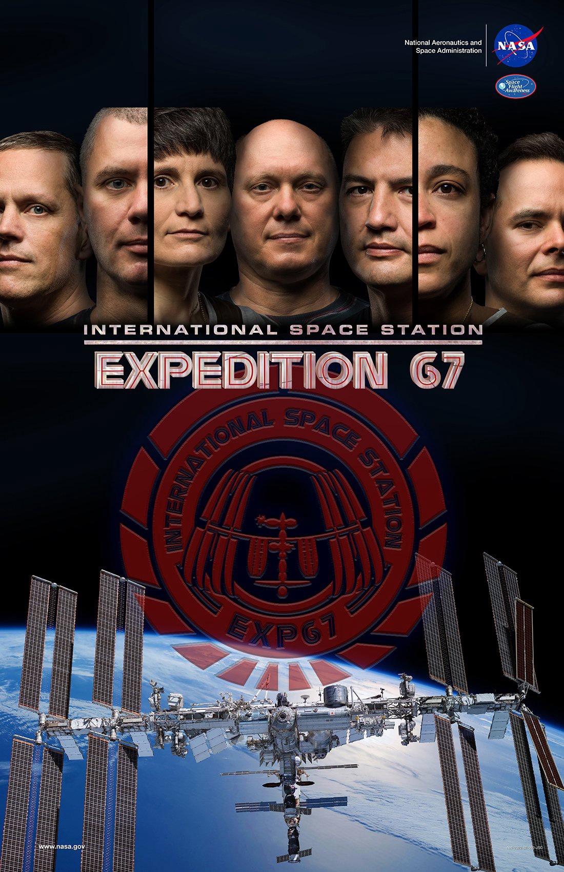 The 11-person crew aboard the station comprises of (bottom row from left) Expedition 67 Flight Engineers Denis Matveev, Kayla Barron, Oleg Artemyev, and station Commander Tom Marshburn; (center row from left) Axiom Mission 1 astronauts Mark Pathy, Eytan Stibbe, Larry COnnar, and Michael Lopez-Alegria; (top row from left) Expedition 67 Flight Engineers Sergey Korsakov, Raja Chari, and Matthias Maurer.