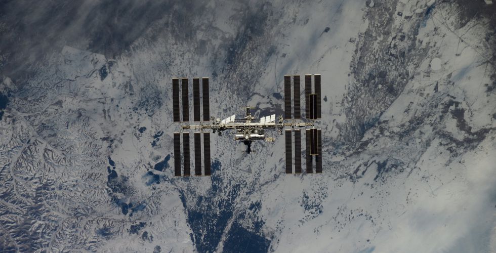 Космонавты отталкивают чехлы экранно-вакуумной теплоизоляции за пределы Международной космической станции