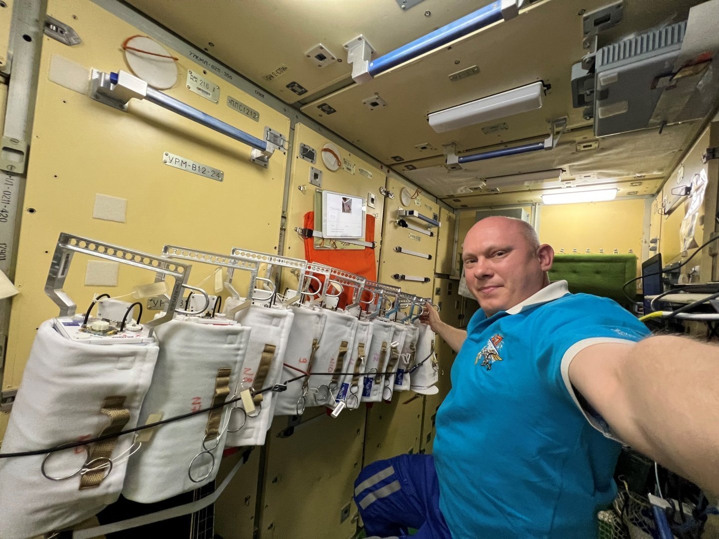 - подготовка выносимого оборудования и инструментов к выходу Олега Артемьева и Дениса Матвеева в открытый космос по российской программе (ВКД-54), запланированному на 17 августа;