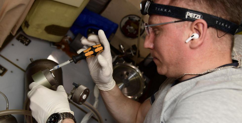• обслуживание системы получения кислорода «Электрон-ВМ» в многоцелевом лабораторном модуле «Наука»;