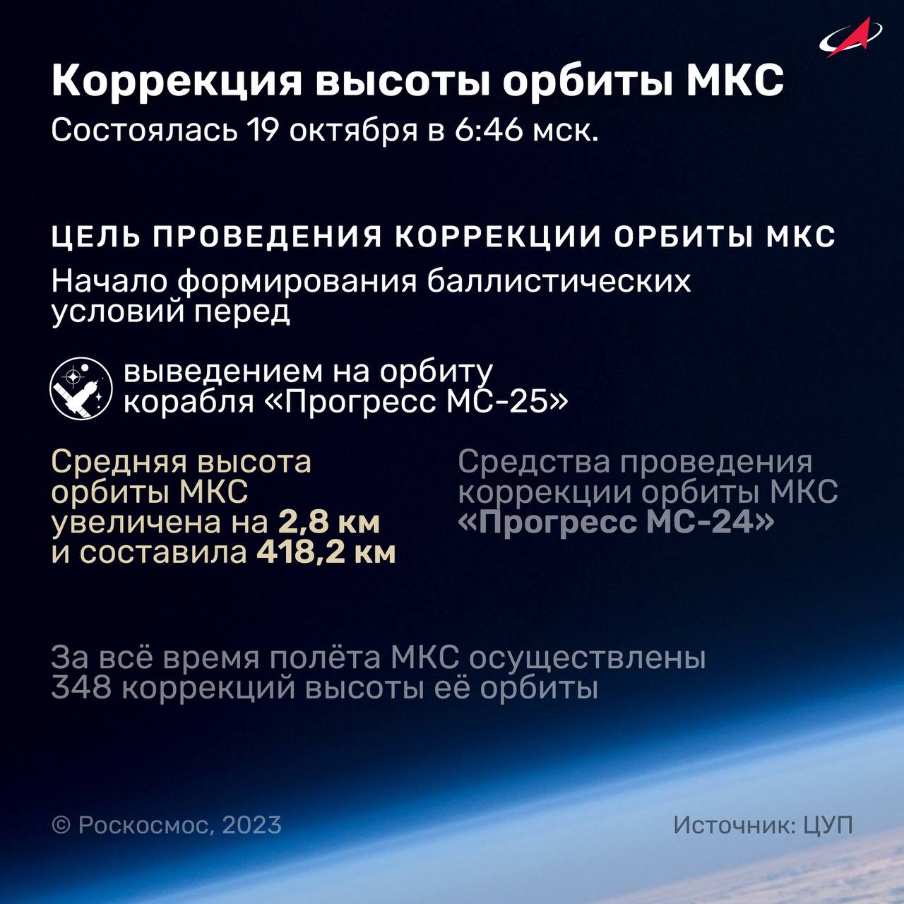 За все время полета МКС проведено 348 коррекций высоты ее орбиты, в том числе 194 — с помощью двигателей кораблей «Прогресс».
