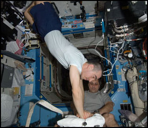 Космонавт Борисенко сейчас находиться в Питере. Вчера в Военмехе видел слайд-фильм, смонтированный им прямо на МКС. Классная вещь. Снимки Земной поверхности и горизонта в высоком разрешении перемежаются снимками внутри станции. Надеюсь где-нибудь его выложат в сеть. Самого Борисенко не было.