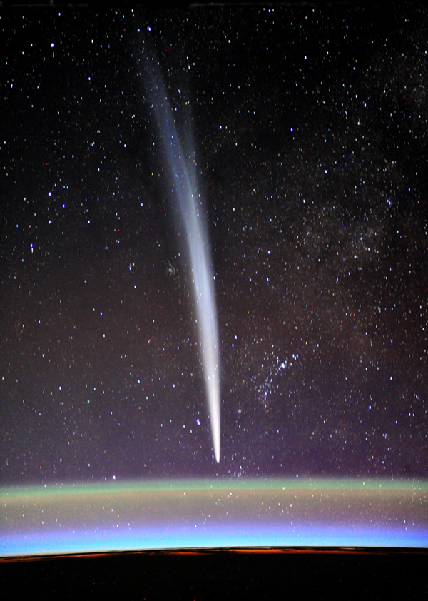 ЦитироватьOn the day last week that our crewmates left planet Earth bound for the ISS, we were treated to another incredible sight -- just in time for the holidays.  Comet Lovejoy, which unexpectedly survived a close encounter with the sun's atmosphere, painted glowing swath of light millions of miles long across dense star fields of the southern night sky.  During several of our daily 15 sunrises onboard ISS we're able to see the comet in the predawn moments.