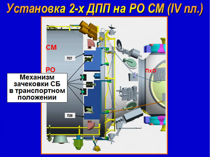 •Установка дополнительных противометеороидных панелей на рабочий отсек 1 (РО1) служебного модуля «Звезда».