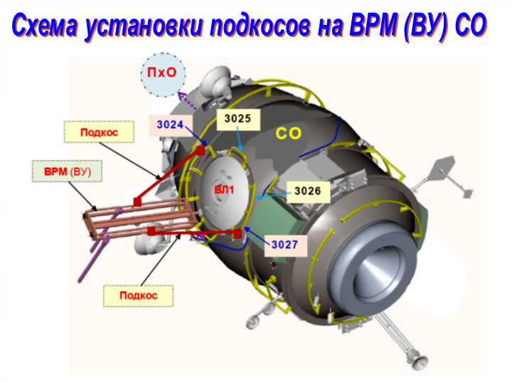 •Установка подкосов выносного рабочего места стыковочного отсека.