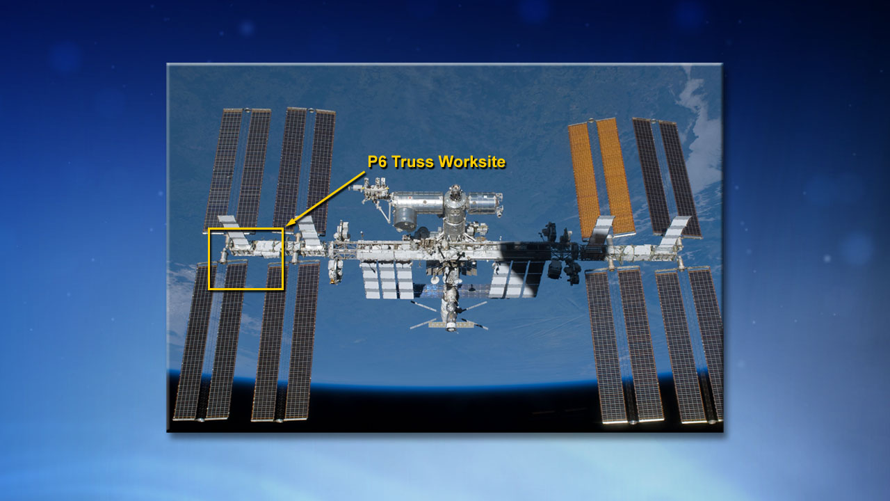Астронавты выйдут из Шлюзового отсека Quest и переместятся на секцию P6
