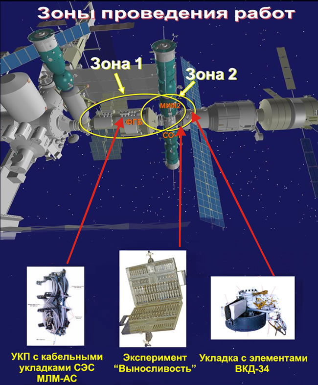 Помимо этого, Юрчихин и Мисуркин установили панель № 2А космического эксперимента "Выносливость" на функционально-грузовом блоке (ФГБ) "Заря". Этот эксперимент направлен на исследование влияния космического пространства на характеристики механических свойств различных материалов.