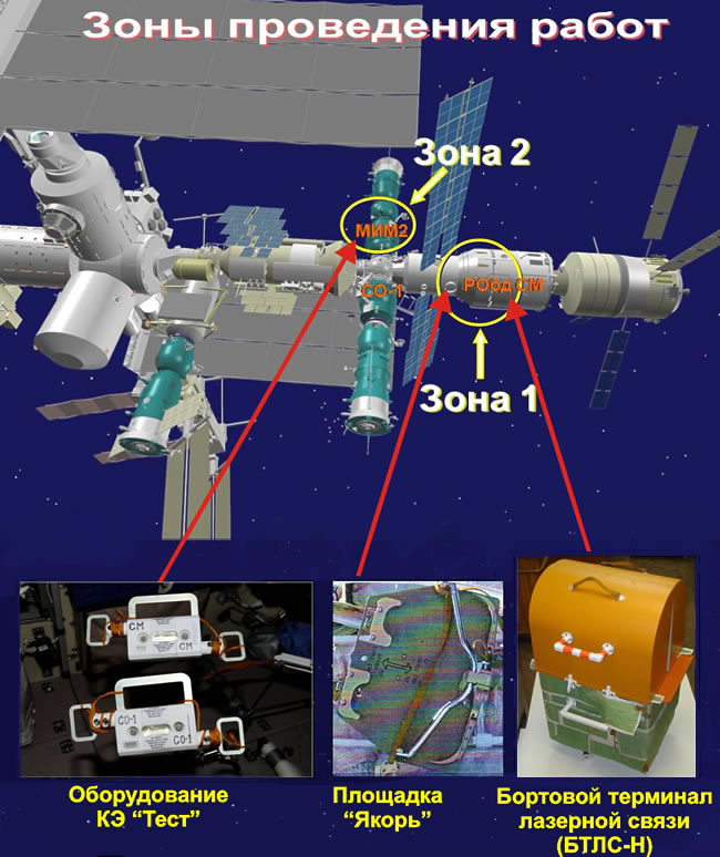 • демонтаж площадки «Якорь» с переходного отсека служебного модуля «Звезда» и установка на нём выносного рабочего места;