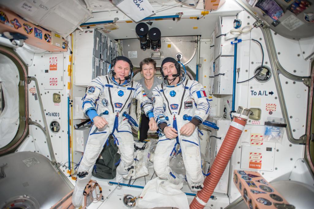 Sad day for Oleg Novitskiy & @Thom_astro as we traded a cargo container for @AstroPeggy. She's now part of our Soyuz 50S crew! #AwesomeTrade