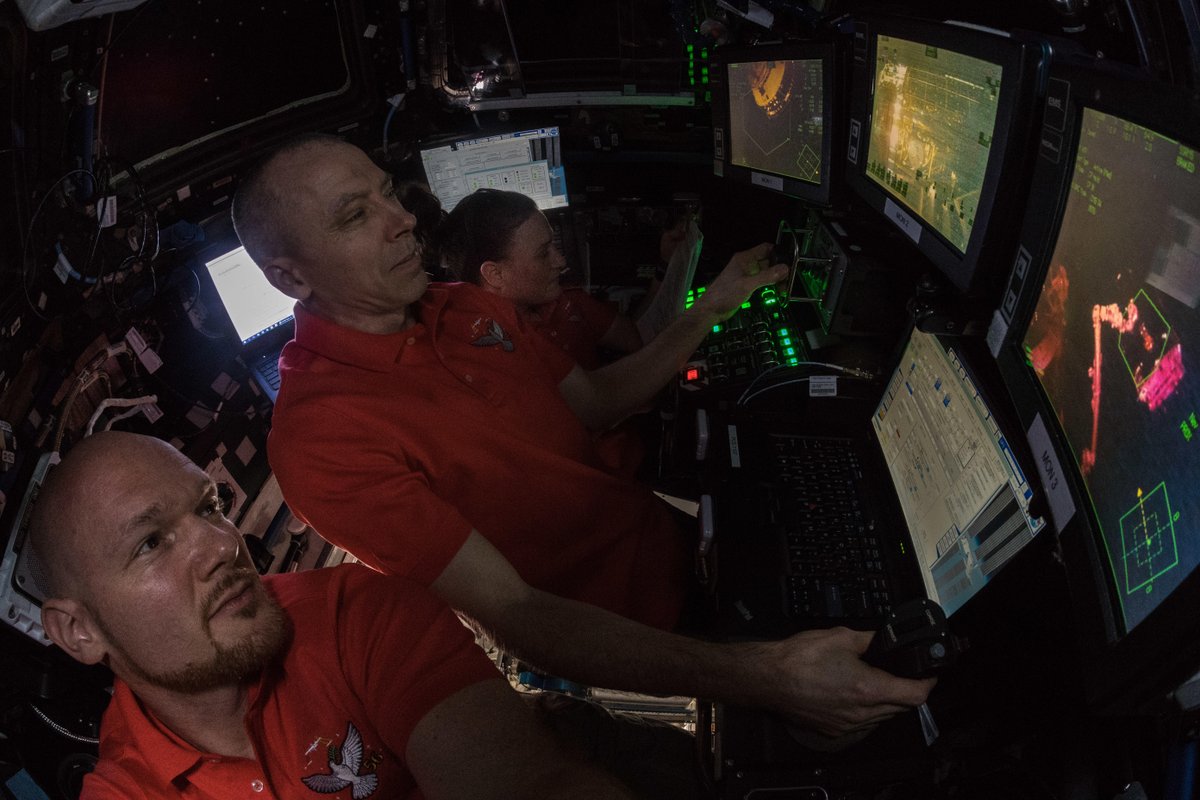 My crew mates @Astro_Feustel and @AstroSerena manually grappled the #HTV7 cargo vehicle with the #Canadarm robotic arm in free flight, which was then docked to #ISS. Not an easy task.