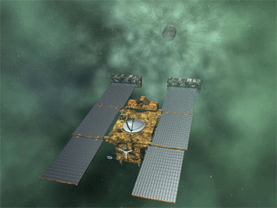 Artist concept of the Stardust-NExT encounter with comet Tempel 1. Credit: NASA/JPL-Caltech/LMSS