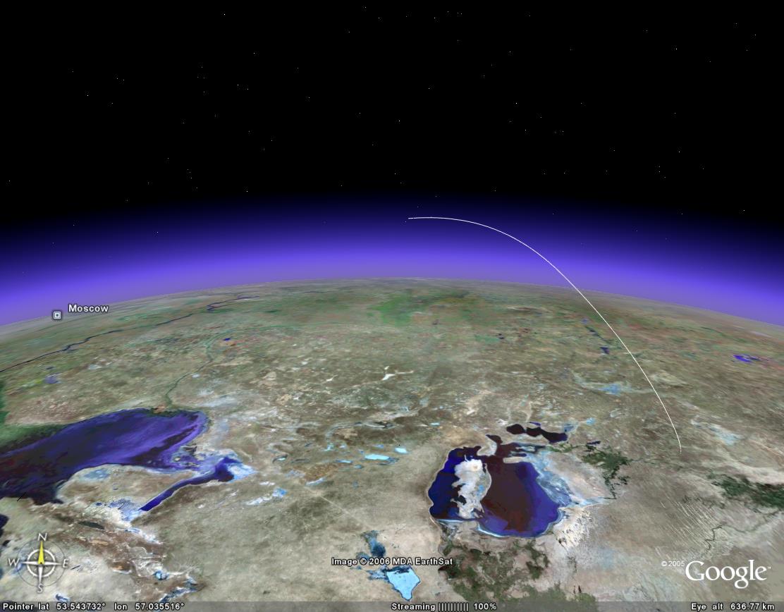 М-дя, вот что замечено. Пересчитал я траекторию, которую выложил Шин (трассу от старта я ему послал - выложит сегодня). И вот что меня смущает. Траектория дана в декартовых кординатах. Пересчёт первой точки дал высоту над поверхностью общеземного эллипсоида 0 м! Я поглядел в табличку Шина - там тоже 0 м, сл-но координаты старта брали на эллипсоиде. Но вот незадача - если широта и долгота 31-й площадки (точнее, стартового стола) после пересчёта на 0-ю секунду совпадают тик в тик (45.995796 с.ш., 63.565027 в.д., даже в Гугль-мапе, т.к. разница невелика между эллипсоидами WGS-84 и ПЗ-90), то вот с высотой господа расчётчики напортачили. Украли ажно целых 115 метров (если судить по Гуглю, если по ПЗ-90 - то чуть больше 120 м)!!!! И, соответственно, НЕДОВЫВЕЛИ КА ПО ВЫСОТЕ НА 115 метров!!!  :wink:  ТщательнЕе надо, господа-товарищи! :)  А то некрасиво как-то  прям под носом у инозаказчика красть высоту стартового стола  :)