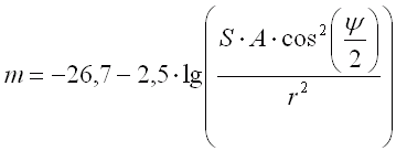 Ответ на ваш вопрос прост. Берём формулу для блеска ИСЗ: