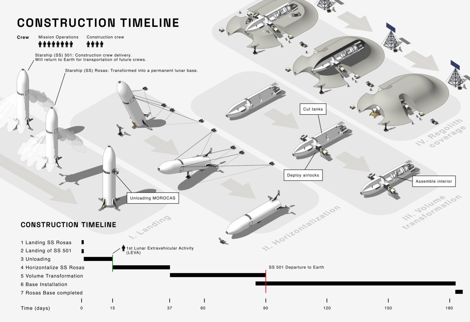 Схема из твиттера по использованию старшипа в качестве лунной базы
