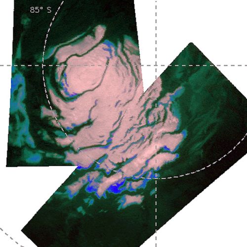 The second form is in icy deposits that encrust rugged scarps around the polar cap, and which appear to be free of CO2.