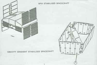 Examples of spin-stabilized and gravity gradient stabilized ferret spacecraft.
