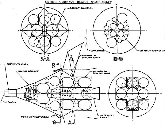В 1967 году, после пожара в "Apollo-1", McDonnell Douglas просчитала несколько вариантов спасательных КК на базе "Gemini-B" с разными сценариями спасения - ожидание на окололунной орбите, предварительная посадка в месте, выбранном для посадки LM, и т.д. Основным результатом явился проект универсального спасательного КК, который обеспечивал спасение экипажа "Apollo" с окололунной орбиты и с поверхности.