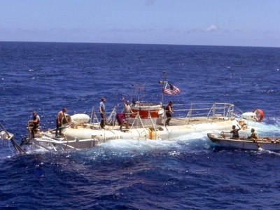 In April 1972 the Deep Submergence Vehicle Trieste II, operating on a secret mission, recovered a film-return capsule from the first, top-secret mission of a KH-9 HEXAGON reconnaissance satellite from 16,400 feet (5,000 meters) below the Pacific Ocean.