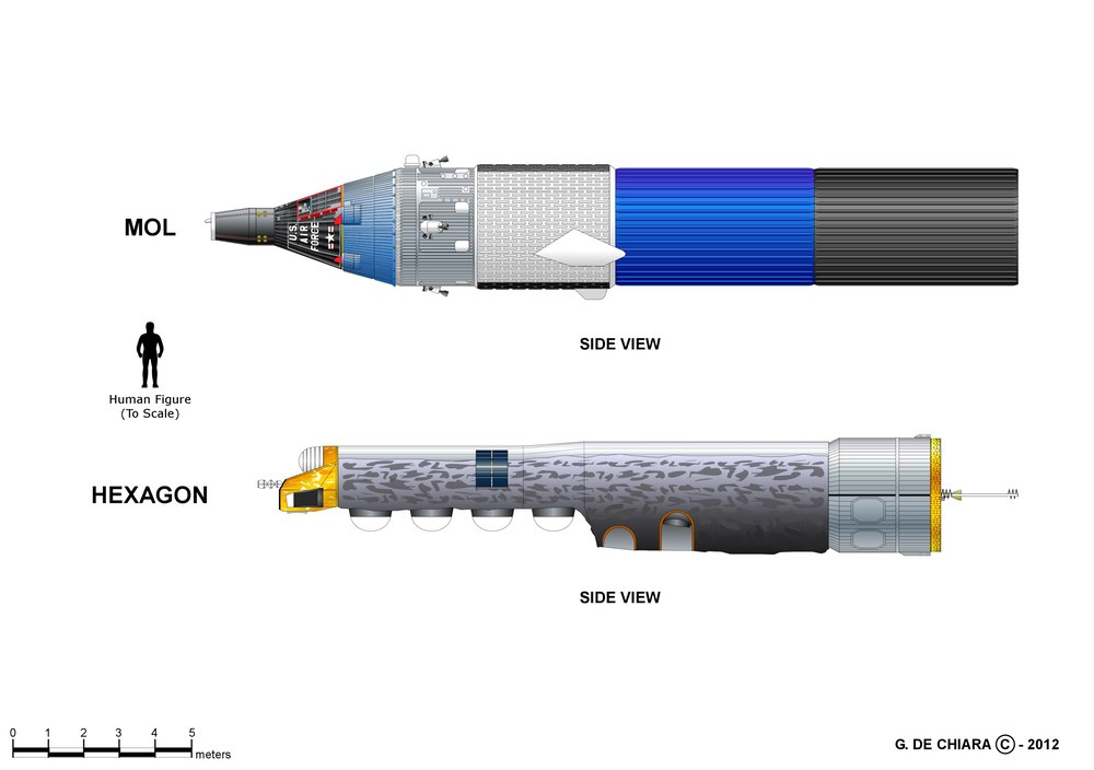 А где у Hexagon'a крепилась 5-я капсула? Пятой в линейке или как у "Гамбита", по оси (т.е. по продольной оси КА)?