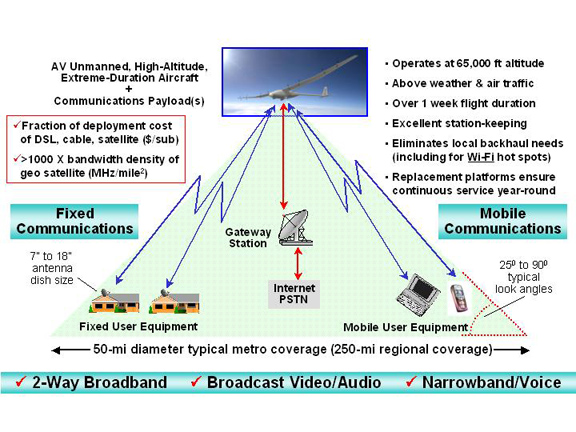In June and July of 2002, SkyTower/AeroVironment, in collaboration with the Japanese Ministry of Post and Telecommunications (CRL/TAO) and NASA, successfully completed several telecom tests in Kauai—the world's first commercial applications transmitted from over 60,000 feet in the stratosphere.